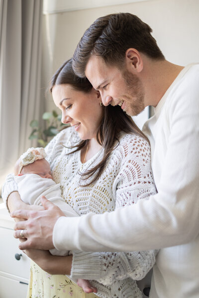 I will bring a couple props to photograph your newborn, however this session focuses mainly on photographing you and your family together in your home.